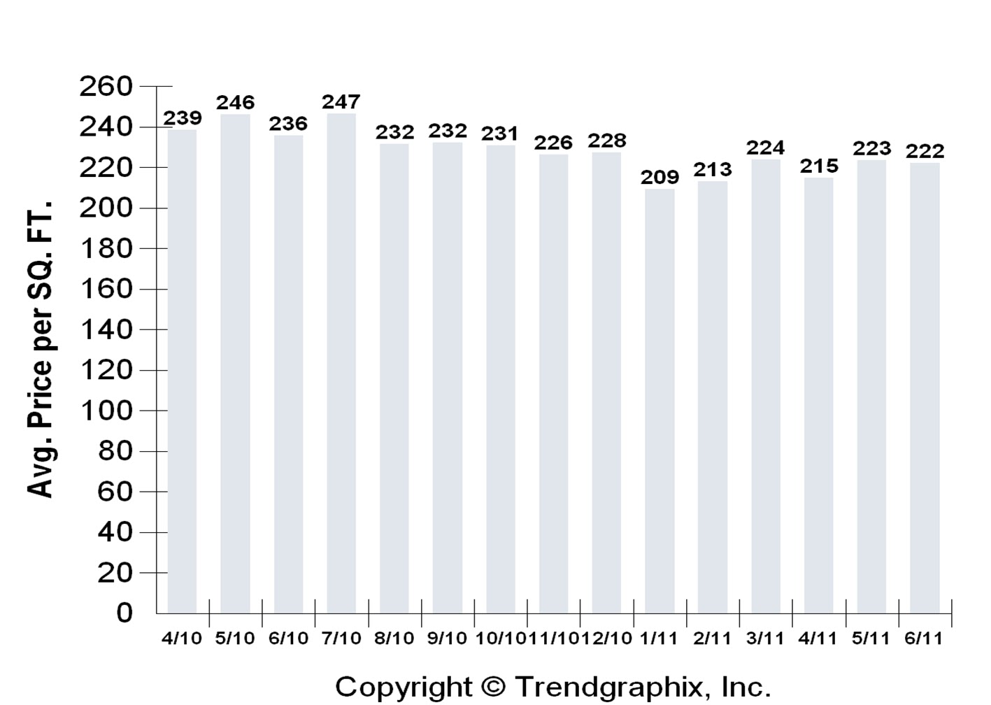 The following shows current (through June) price trends (average cost/square foot) in Metro Seattle.